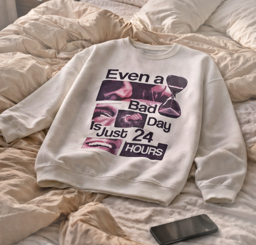 Crewneck Sweatshirt — "Even a Bad Day is Just 24 Hours" Graphic